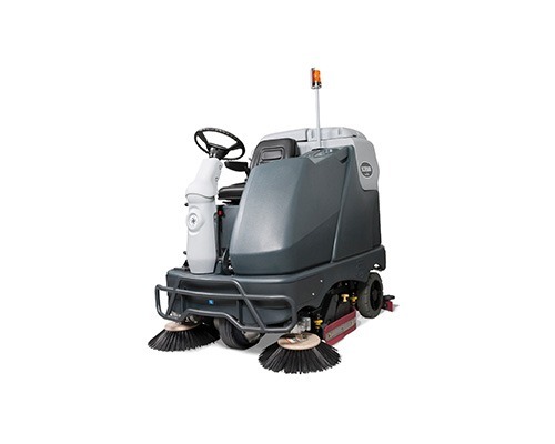 Restregadora industrial a baterias para interiores y exteriores hombre a bordo, ancho de limpieza 122 cm (48 in), tipo de restregado cilindrico, capacidad de tolva 14L; Ideal para alamcenés, supermercados, aeropuertos, estacionamientos.